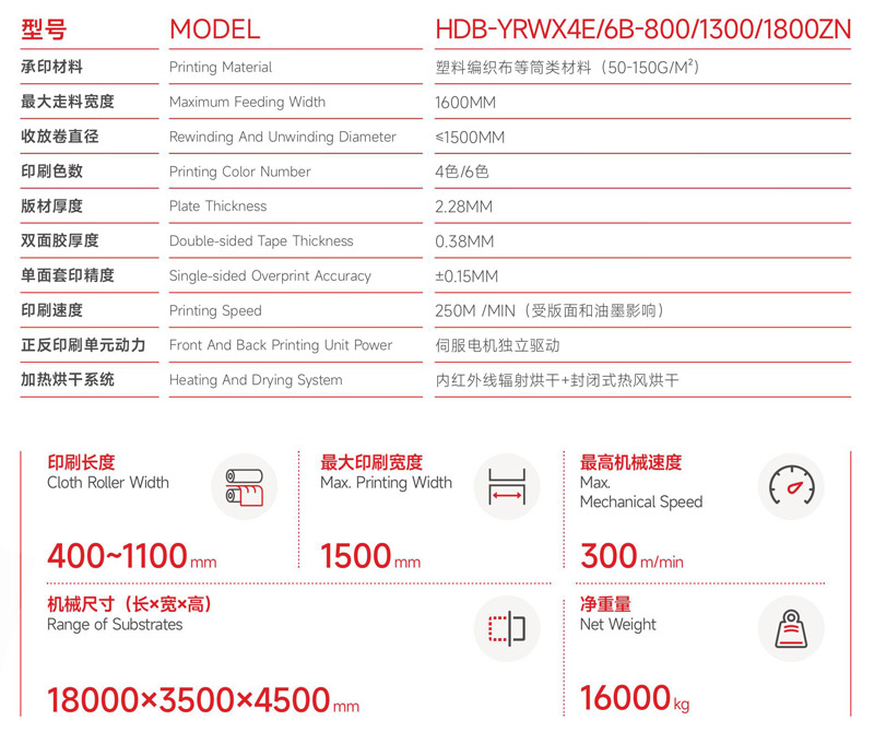 This type of equipment is a roll-to-roll intelligent high-speed flexographicprinting machine newly developed and manufactured by our company.The whole machine has a satellite layout and adopts a unique roll-overflip structure, allowing four printing groups to print both front and backsides at one time. Eight colors; the flexographic plate (resin plate orrubber plate) is the type plate, using liquid ink (environmentally friendlyink or oil-based ink), and the ink is transferred through a ceramic aniloxroller to achieve clear and high-speed transfer printing. The equipmentis widely used in the printing industry of plastic woven fabrics, non-wovenfabrics, plastic films, paper and other materials.